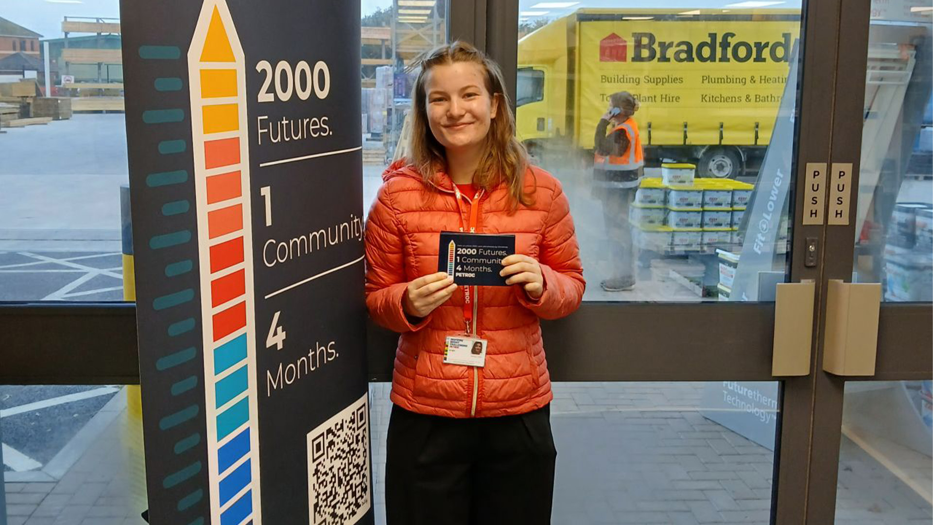 Petroc’s Business Team recently took their 2000 Futures campaign on the road once again, with a special pop-up information stand at Bradfords Building Supplies, engaging directly with professionals in the construction sector.